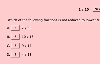 This activity requires students to observe a set of fractions and identify the "oddball" that is not reduced.