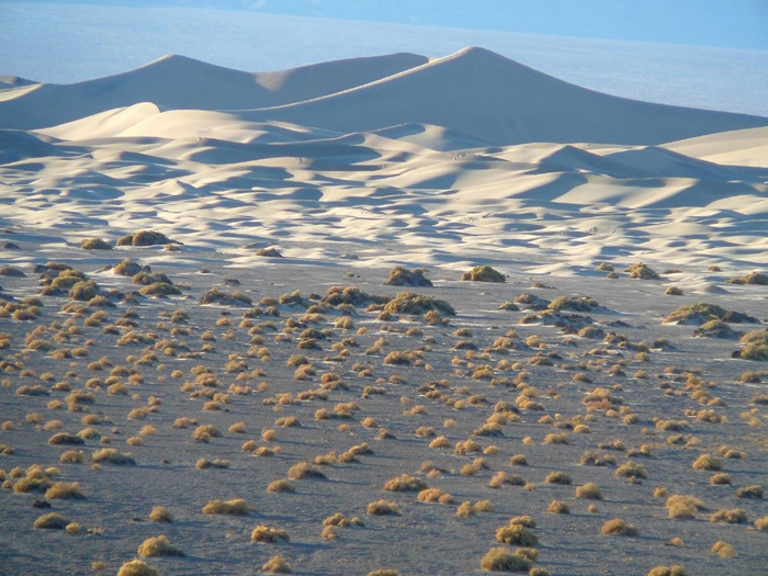 Death Valley National Park, located in eastern California, is one of the most arid places on earth. It also contains the second lowest point in the western hemisphere (282 feet below sea level). Summer tempertures average well over 100 degrees F, and the region receives a little less than two inches of rain per year. The park, however, also features incredible sand dunes, colorful badlands, rocky canyons, and hearty animals that have adapted to the harsh climate. |