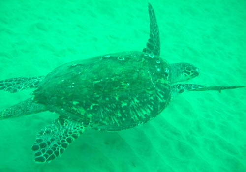 Breeding: Breeding periods vary amongst Hawksbill Turtles depending on location. Like most sea turtles, the Hawksbill female emerges from the ocean to deposit her eggs in the sand at night. She will dig a hole above tide line and lay up to 140 eggs before using her back flippers to cover them with sand. In two months, the young Hawksbills hatch and head for the ocean. As with all sea turtles, only one or two per thousand babies makes it to maturity. Most are picked off on their way to ocean by gulls, raccoons, large crabs or predatory sea birds, or, in the ocean by sharks and other predators. It is thought that the Hawksbill reaches full maturity after 30 years.