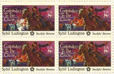This beautiful coloring page features a postage stamp commemorating Connecticut's Sybil Ludington.