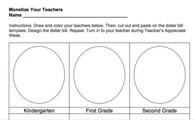 This activity requires students to make a drawing of their favorite teacher or teachers. First, draw and color your teacher, next cut the oval out and paste it to the dollar bill template included. Finally, include the necessary text on the dollar bill. You can also design the dollar bill.